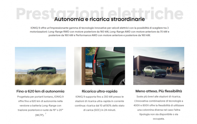 Scopri nuova Hyundai IONIQ 9: fino a 620 km di autonomia, ricarica ultra-rapida con tecnologia 800V e configurazione a 6 o 7 posti per vivere nuove esperienze e condividerle con chi vuoi, scegliendo di viaggiare sempre con il massimo comfort e le tecnologie più avanzate.